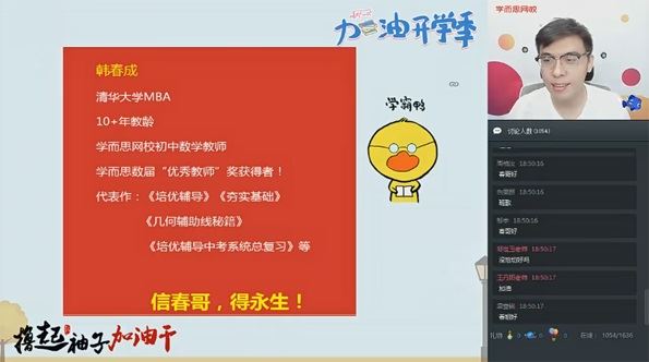 初二数学学而思韩春成课程,本课程共6.65G,可通过百度网盘转存下载或者在线播放此“韩春成 初二数学2019年秋季菁英班”课程。