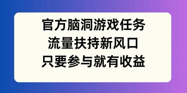 视频号脑洞游戏任务流量扶持风口:参与就有收益
